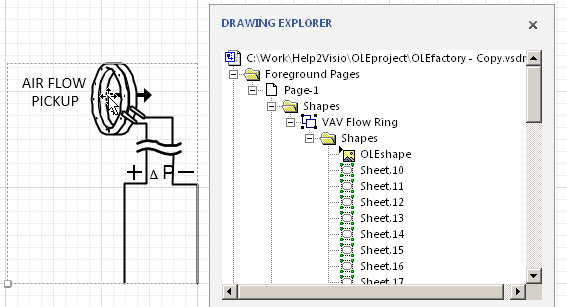 Решаем это так. Собственно вызов встроенного объекта размещаем в шейпе - контейнере, то есть в Package. Чуть выше в Drawing Explorer он виден как OLEshape. Вызов обеспечивается функцией DOOLEVERB() в ячейке Scratch.A1. А чтобы передать управление этой ячейке организуем счетчик в ячейке Scratch.C1 средствами основного шейпа.